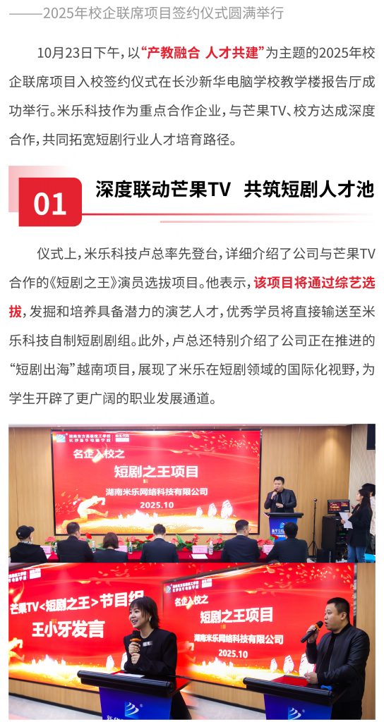 米乐科技携手芒果TV、长沙新华电脑学校,共启产教融合新篇章